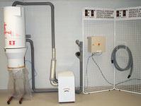 geleitet. Die dabei entstandene Abluft bläßt die Anlage nach draußen. Weil selbst kleinste Staubteilchen direkt